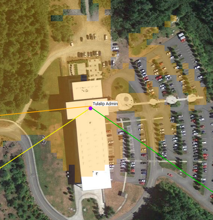 Still need to do elevation profiles and a lot of it will depend on the height of building vs surrounding trees. Also need to look at total loss and distance, and the actual position on the building will make a difference for Haystack and Buck, but here are your possibilities so far: Blyn (yellow shading, orange line) Buck Mountain (yellow shading, yellow line to SW) Haystack (green shading, green line) From: PSDR [mailto:psdr-bounces@hamwan.org] On Behalf Of Joe Hamelin Sent: Monday, October 5, 2020 8:04 PM To: Puget Sound Data Ring Subject: [HamWAN PSDR] Heat map for Tulalip site. We're putting up a PNWDMR repeater at the Tulalip Admin building (48.0550477,-122.2585515) but due to the way the building is we can't point south. Does anyone know if there is a PSDR site that we can hit looking north-ish? Thanks and 73, Joe -- Joe Hamelin, W7COM, Tulalip, WA, +1 (360) 474-7474