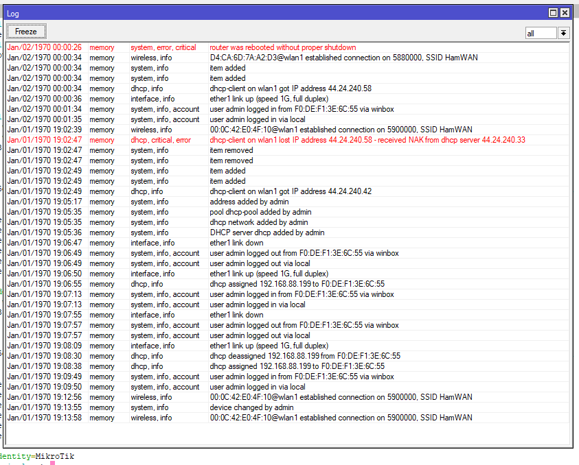 I have been able to connect my Microtik router to CapitolPark and ping Google.com from the Winbox terminal command line in the router, but I must be missing some DNS information. While the router appears to be able to ping sites, my laptop can't connect through the router or ping anything. I'm close, but can't quite connect. Could somebody please help me out by sending some things to try or give me a call? Bob Edmiston Madison Park HUB KG7UCL 425-985-4182