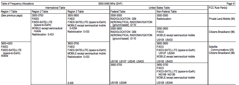 3400 to 3500 is shared with mil radar, and I didn't see the USAF vacating this band.