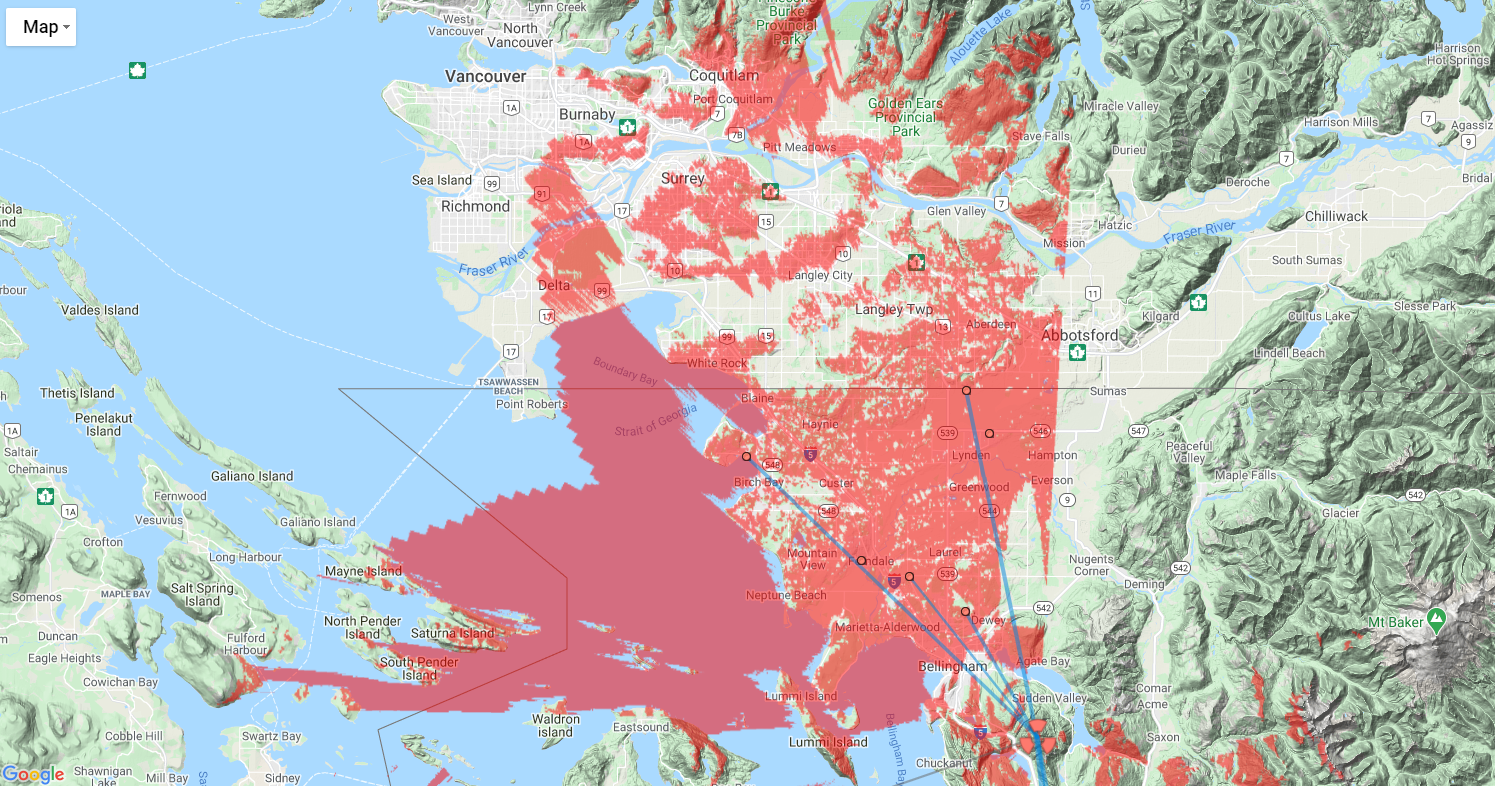 I am shown in the HamWan coverage area according to the coverage map and I can in fact see Lookout Mtn from where I am at 120M elevation here in Maple Ridge BC.